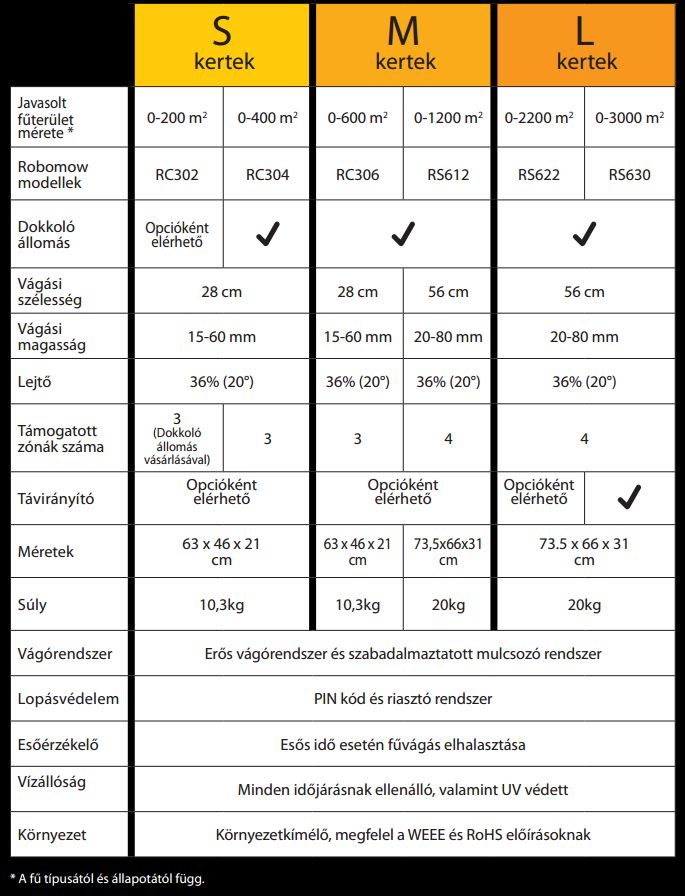 - Automata működés: Robomow® felhasználói beavatkozás nélkül képes dolgozni
